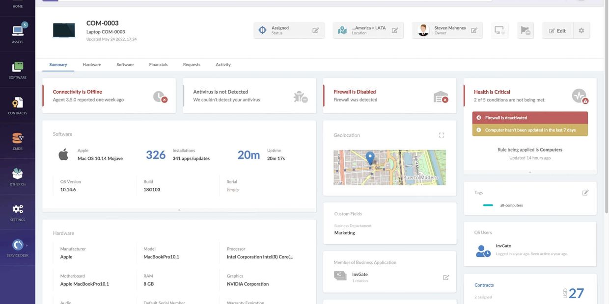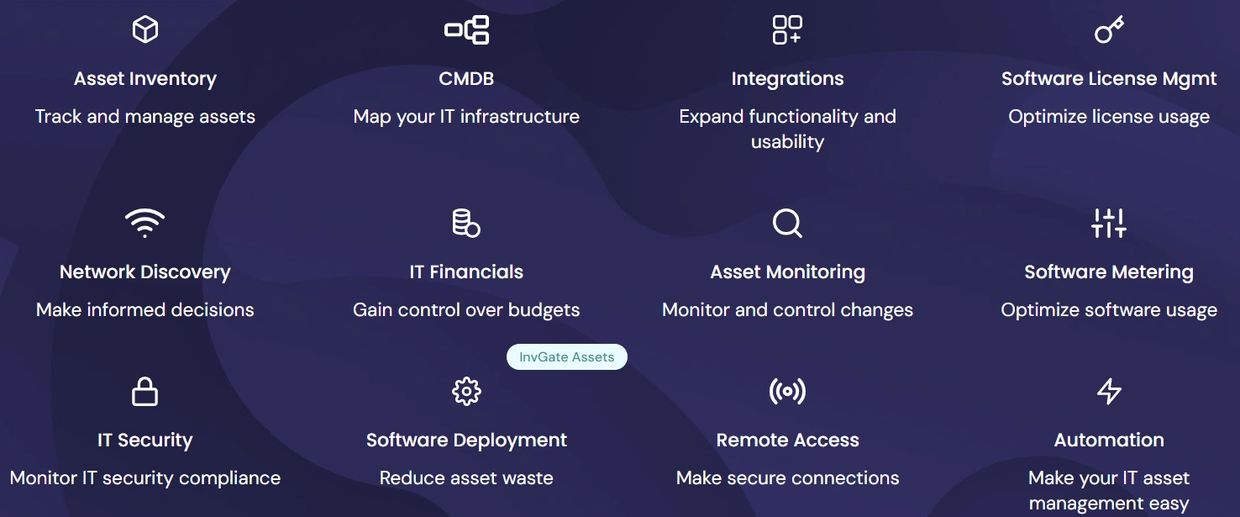 Insight is an amazing software to control the assets of the company. It allows you to add financial data that allows you to know the warranty of the product, the purchase date, etc. The support team has very fast answer and always make sure that you understand the software.